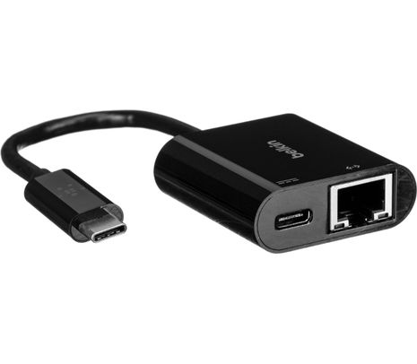 Este adaptador de USB-C a Ethernet + carga proporciona un cómodo acceso a una conexión a Internet rápida y fiable a través de un puerto gigabit Ethernet y permite USB Power Delivery al mismo tiempo