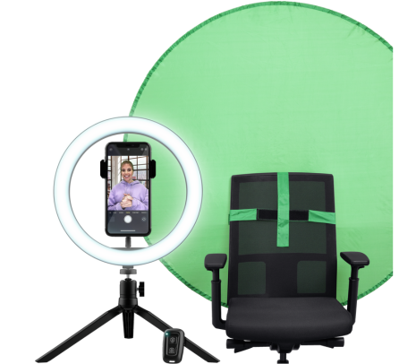 TRUST MAKU+ KIT DE STREAMING ARO LUZ + PANTALLA VERDE